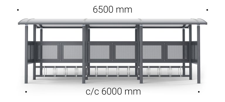 Ritning Cykelskydd Ymer dubbel 5 sektioner, med plint