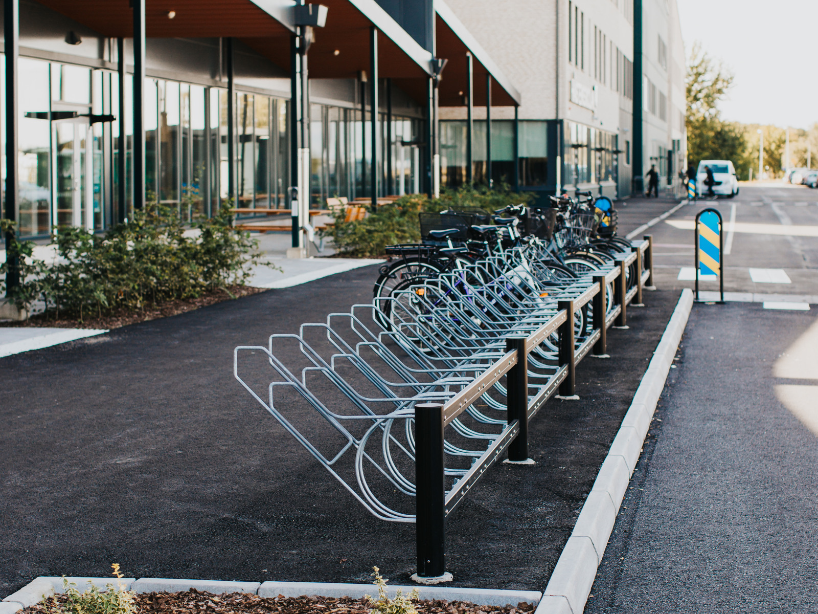 Cykelställ Bike har ett standardutförande som därefter kan byggas på med olika tillbehör utifrån varje behov. Tillbehören beställs samtidigt som cykelstället.