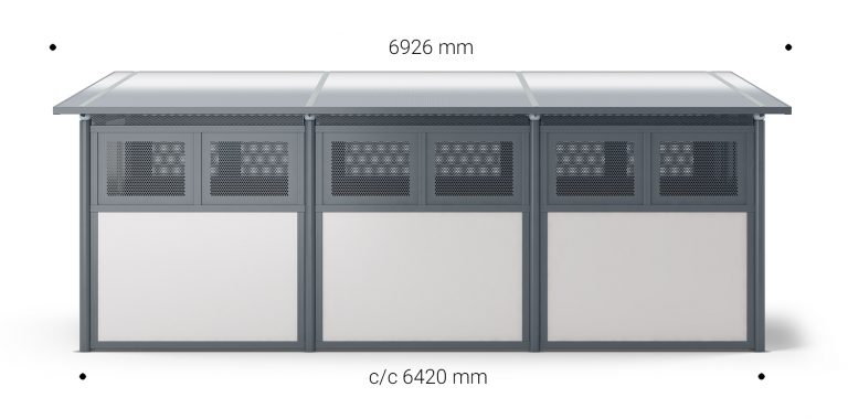 Tellus är vår mycket populära förrådslösning som passar perfekt utanför flerbostadshus och företag. Med en bredd på antingen 3,00 eller 3,75 meter lämpar den sig väl till olika typer av förråd eller som miljöstation med plats för effektiv källsortering.