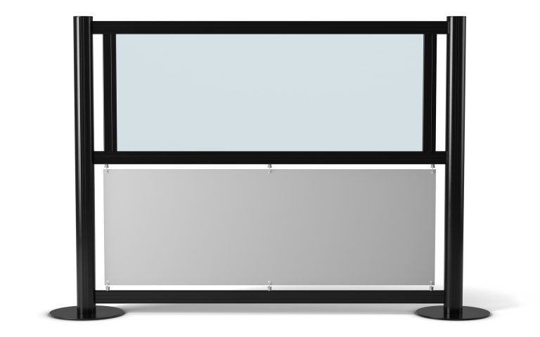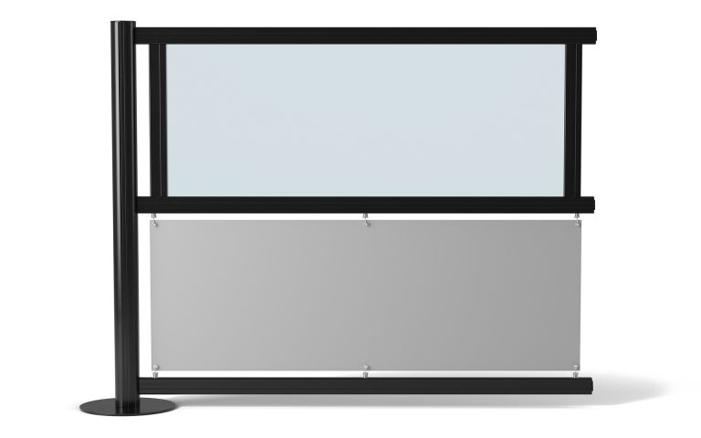 Denna kombination kan även användas som komplement till restaurangstaket markisväv för att erhålla optimalt skydd vid vindutsatta sidor. Staketets stolphöjd är 1600 mm. Som standard lagerhålls profiler/glas till en och två meters sektioner. Sektionerna monteras normalt i rak linje med möjlighet till 90 graders vinkling.
