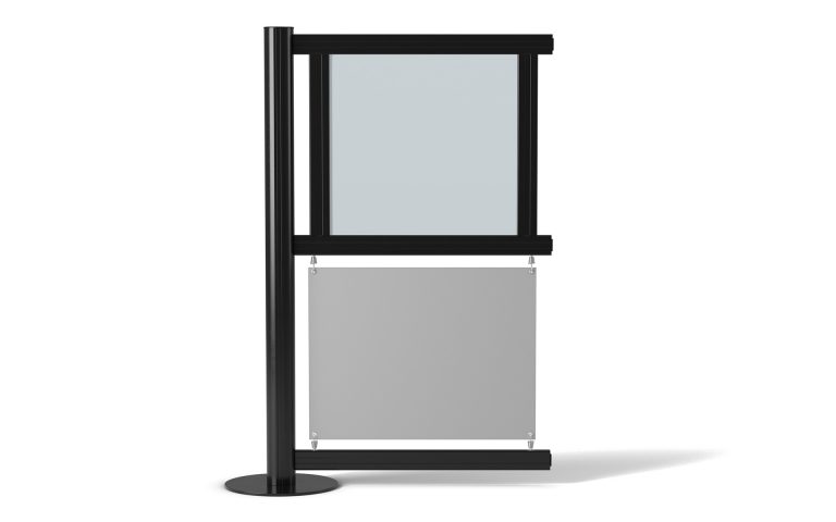 iUtifrån en grundsektion byggs staketet vidare med tilläggsektioner i rak linje eller i 90 graders vinkel. Om annan vinkel förekommer monteras en adapter som möjliggör valfri vinkel. Sektionen innehåller 2 st stativ/stolpar, fotplatta, övre del innehåller ett 6mm polycarbonat och nedre markisväv.