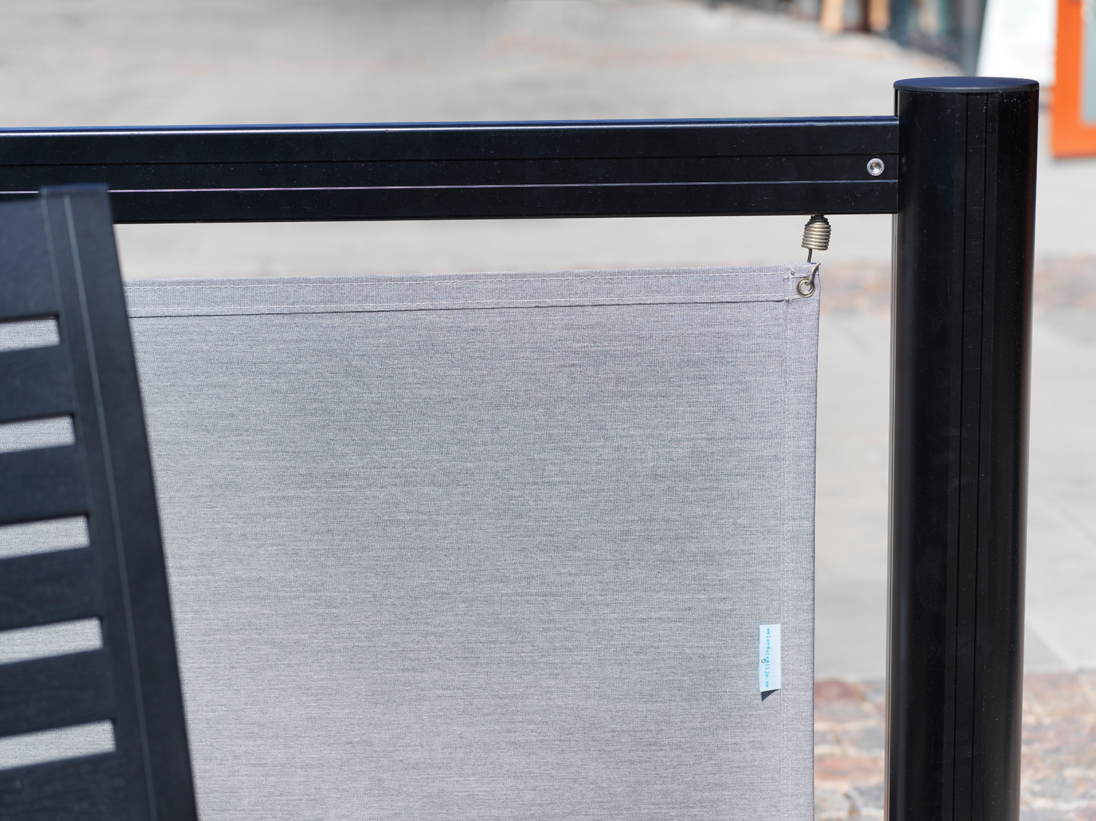 Vårt restaurangstaket med markisväv är väldesignat och tåligt för att hålla sig snyggt från år till år. Staketstommen av underhållsfria aluminiumprofiler påverkas ingenting av vädrets påfrestningar och markisväven har en unik fjäderinfästning som tål starka kastvindar eller vattenavvisning.