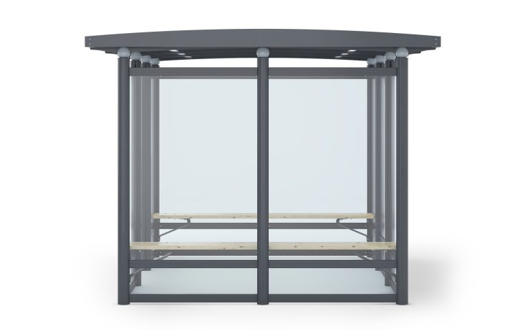 Ett mer påkostat rökrum med vår egen takkonstruktion som är kännetecknande för Weland Utemijö. Väggsektionerna är av härdat glas och ger ett bra väderskydd med god sikt åt alla håll.