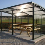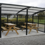 Väderskydd Ymer är en välkommen och användbar tillgång oavsett om det regnar, blåser eller solen skiner. Ymer byggs ihop av moduler och kan anpassas efter behov och storlek. Monteringen görs enkelt med hjälp av medföljande beskrivning. Självklart är Ymer CE-märkt och beräknat att klara av att stå utomhus, året runt, i alla typer av klimat.