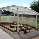 Tips! Plantera gröna växter runtom väderskyddet så smälter det in i en grönskande atmosfär.